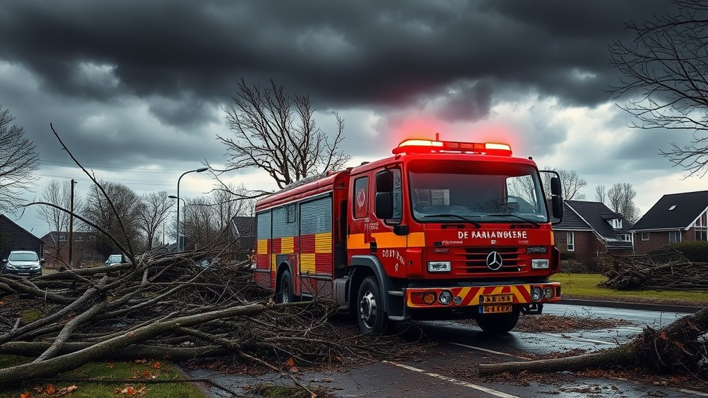 De brandweer is ter plaatse gekomen om de situatie te beoordelen en eventuele gevaarlijke situaties te verhelpen. Voor zover bekend zijn er geen gewonden gevallen, maar bewoners zijn gewaarschuwd voor mogelijke verdere schade door afbrekende takken of andere losliggende objecten. De gemeente zal later deze week een inspectie uitvoeren om de schade in kaart te brengen.